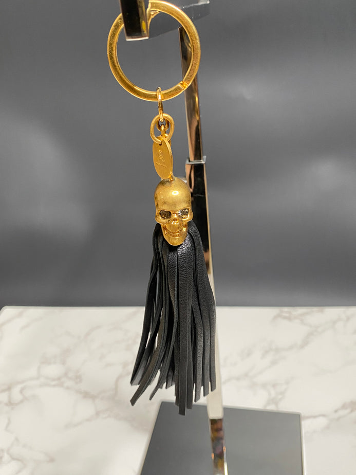 Skull Leather Crystal Embellished Fringe Keychain