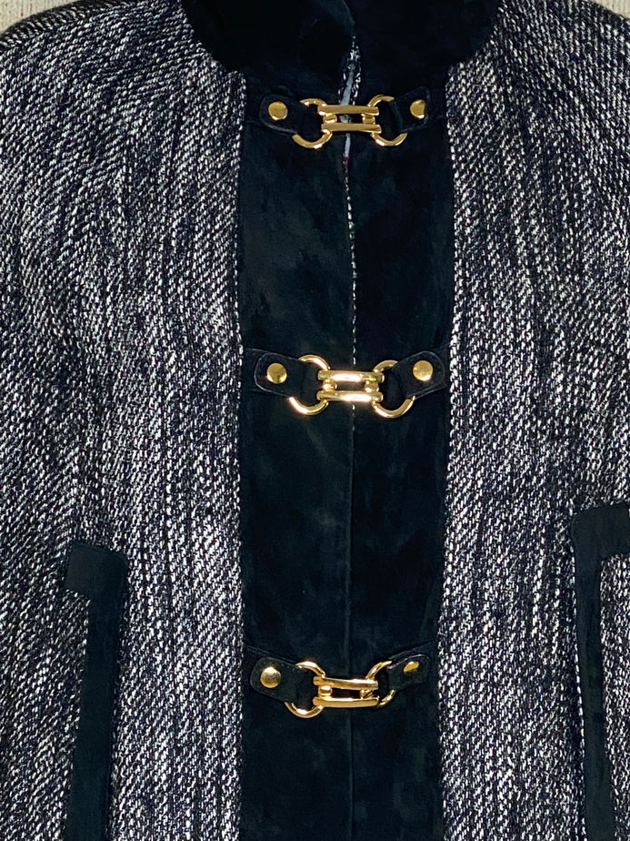 I am waiting for this item "Tweed Embellished Suede Trim Cape"