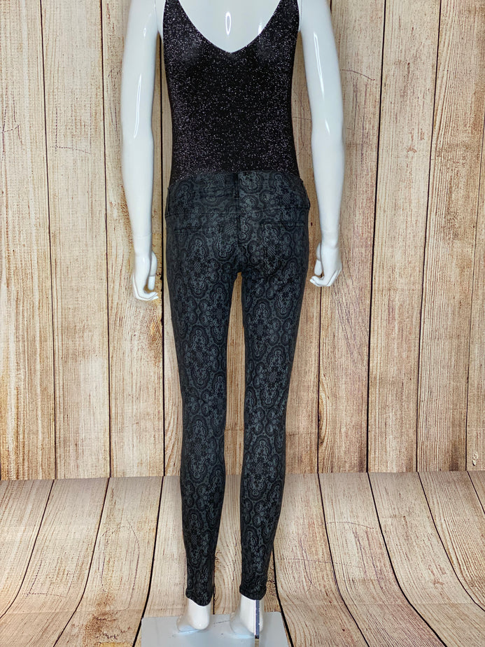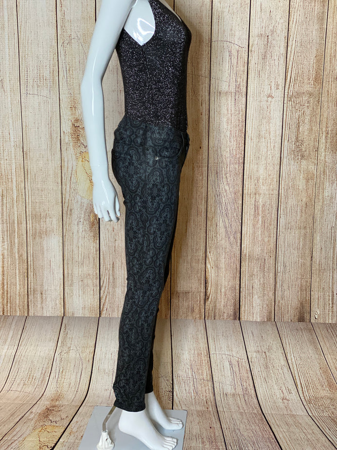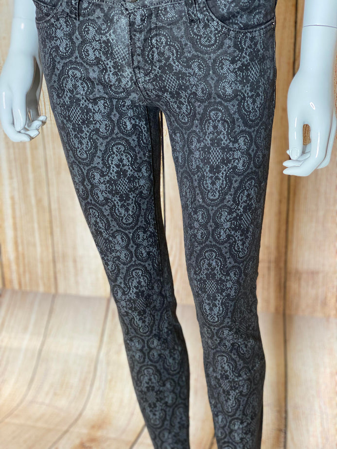 Black & Charcoal Ankle Skinny Lace-Print Jeans