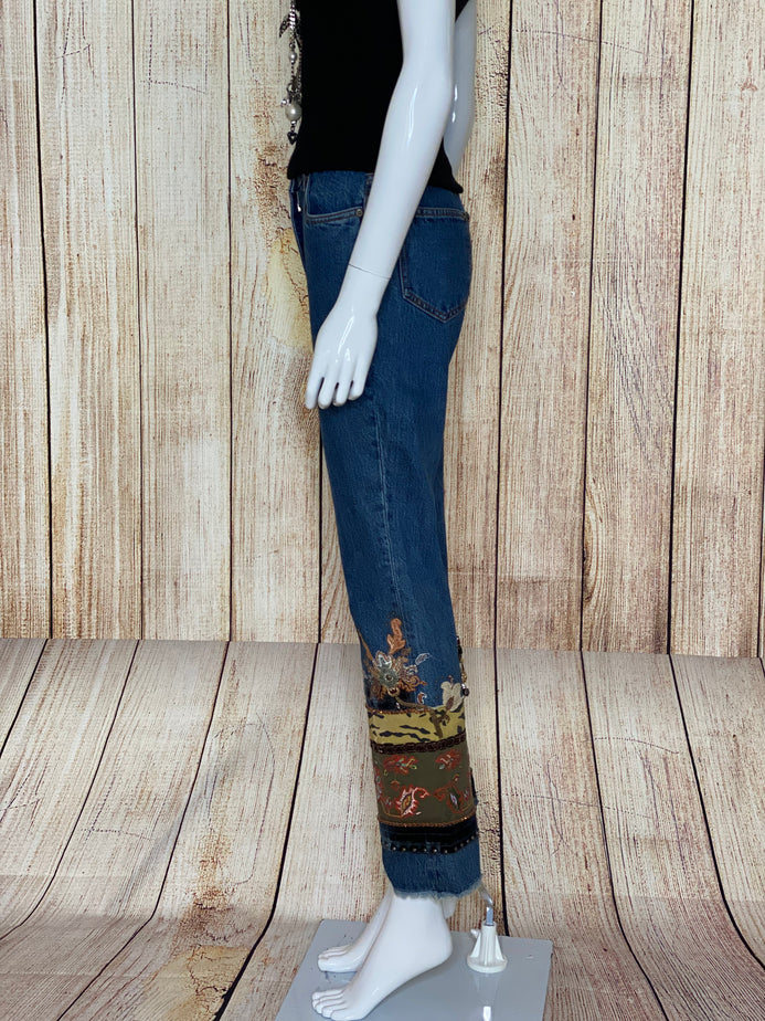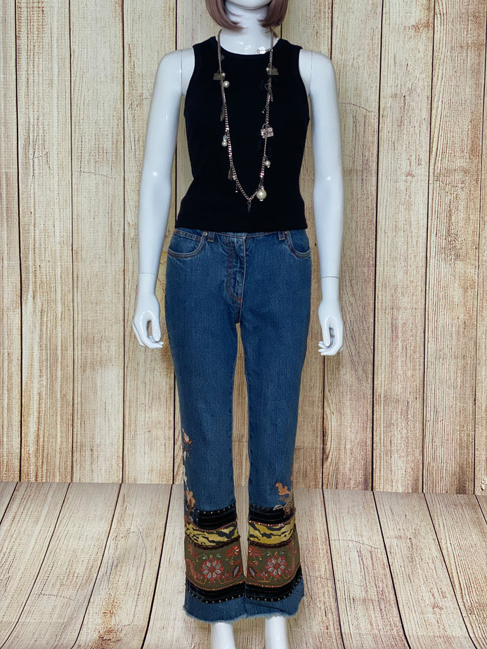 Cropped Fringe Hem Jeans
