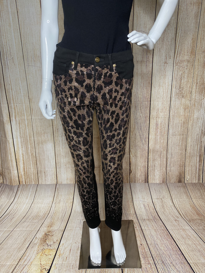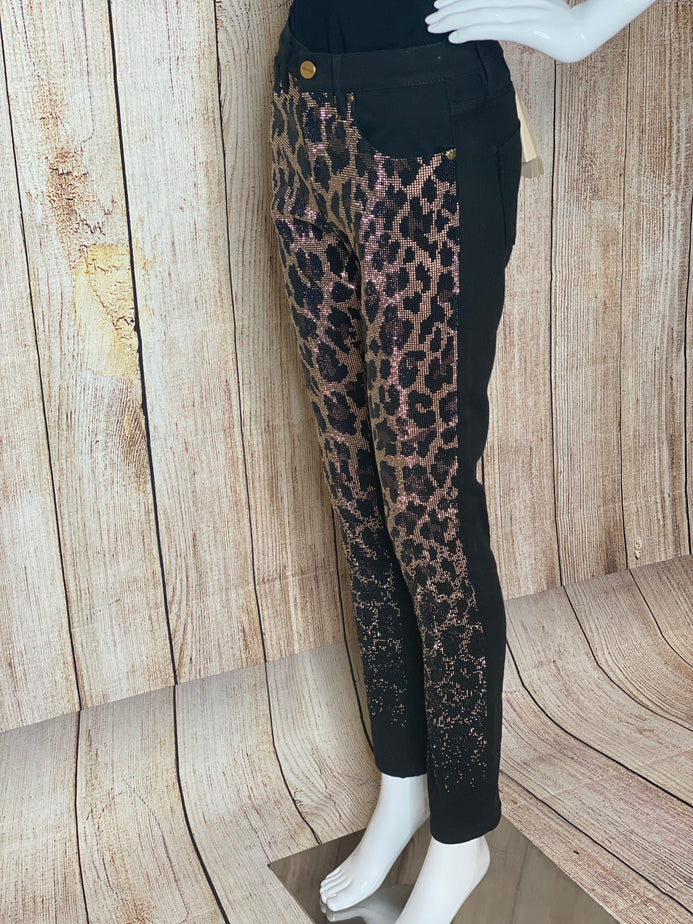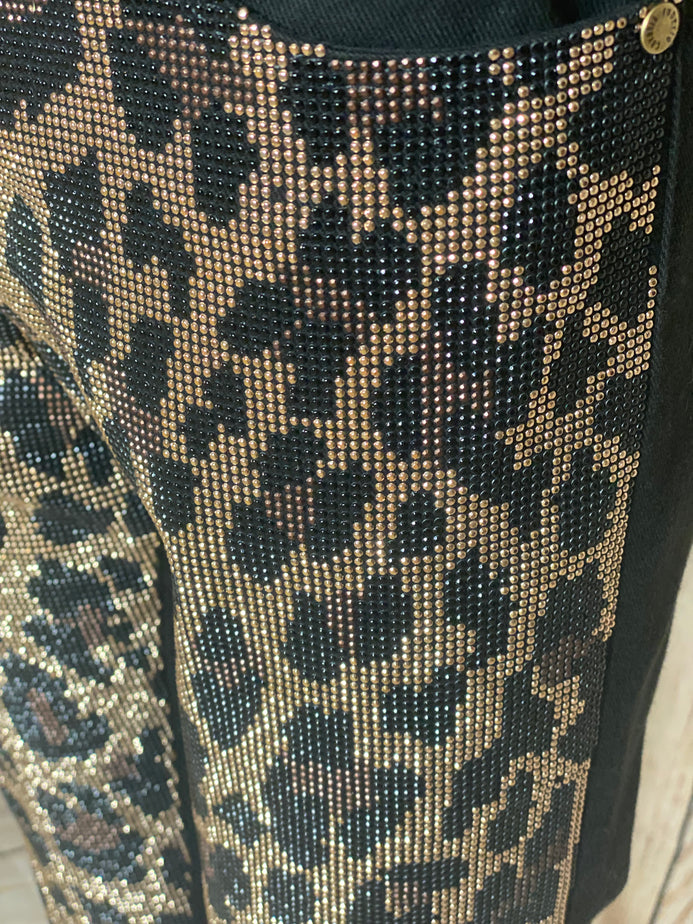 LEOPARD EFFECT CRYSTAL EMBELLISHED JEANS