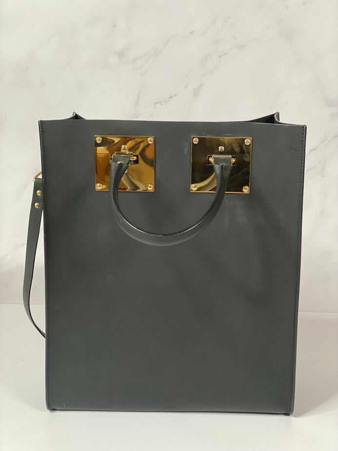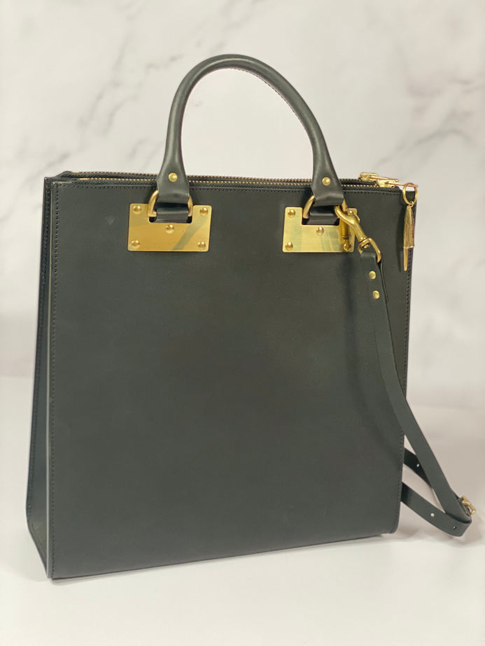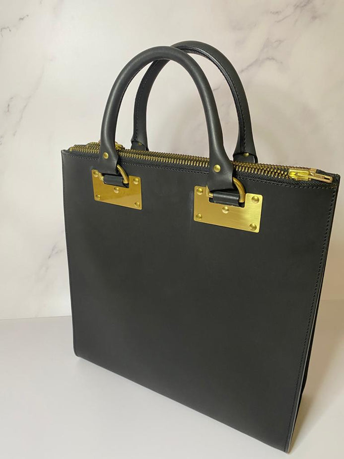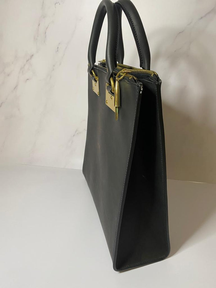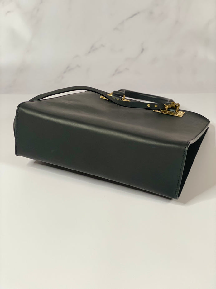 New but metal a little tarnished and needs polishing. Some visible scratches on leather.