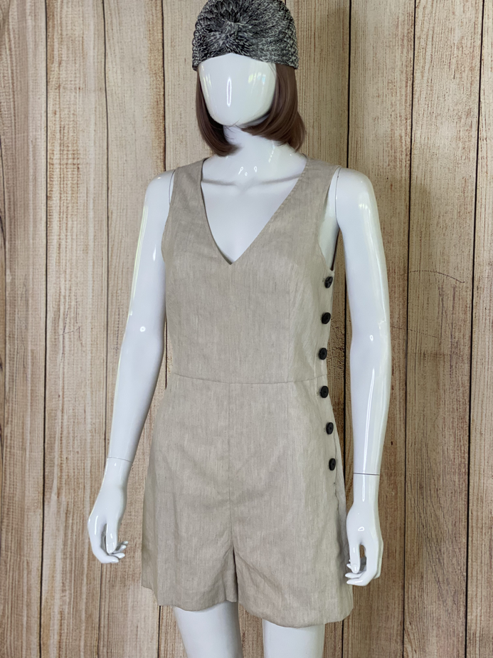 Side Button Linen Playsuit