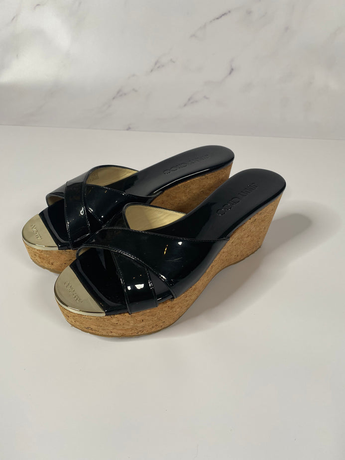 I am waiting for this item "Prima Patent & Cork Wedge Sandal In Black"
