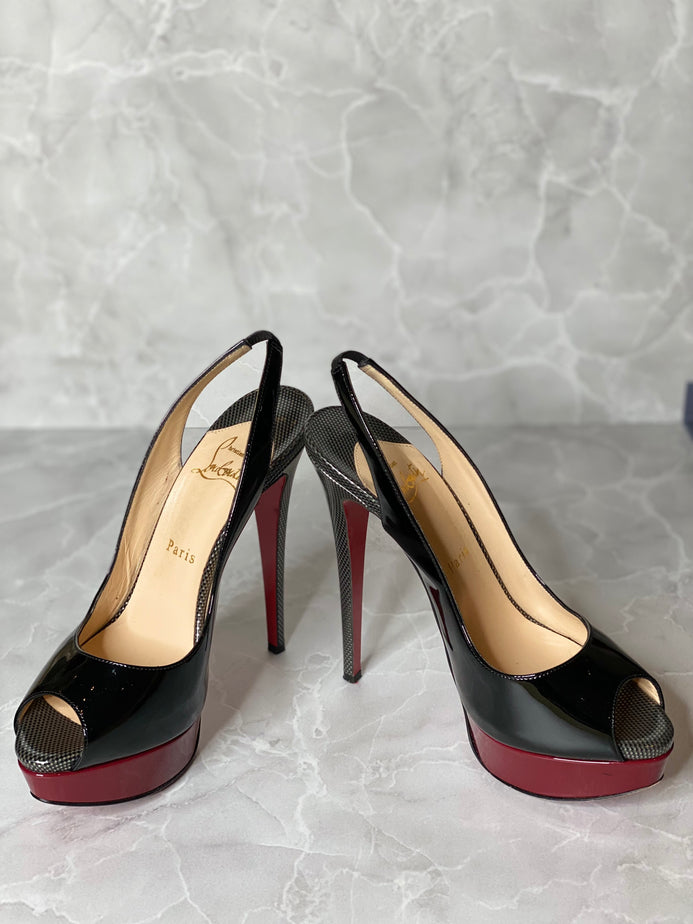 Lady Peep Sling 150 Patent Specchio