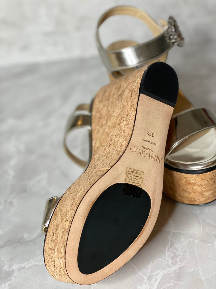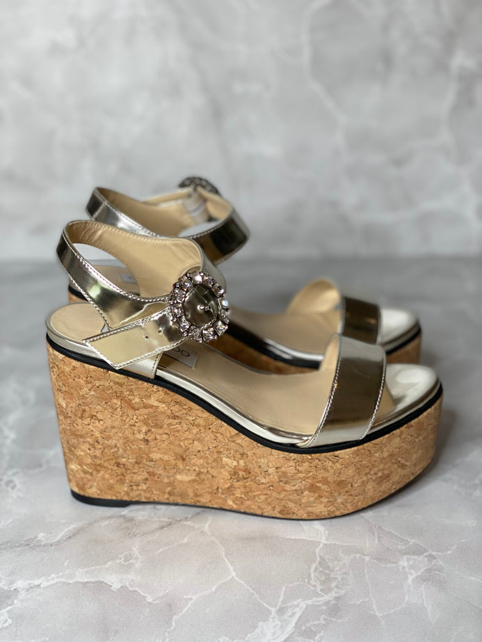 Nylah 100 Crystal Embellished Mirror Leather Cork Wedges