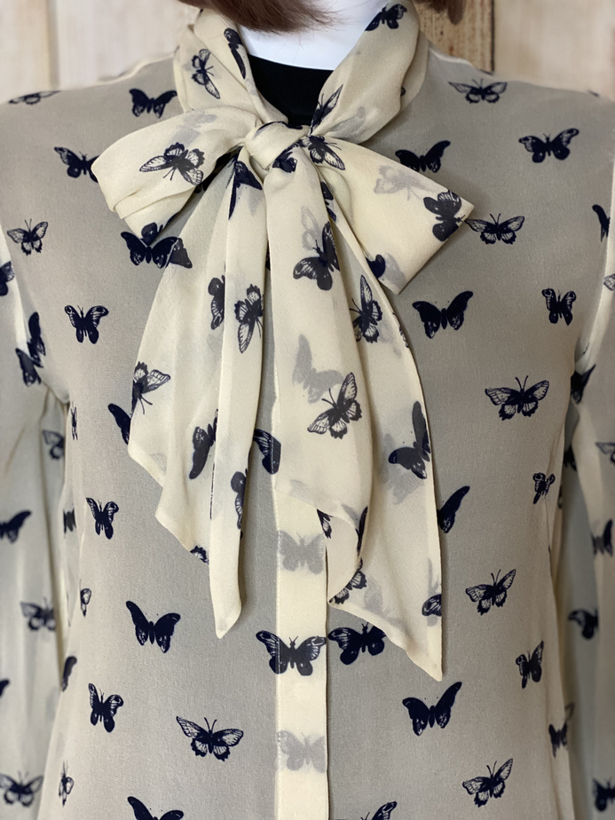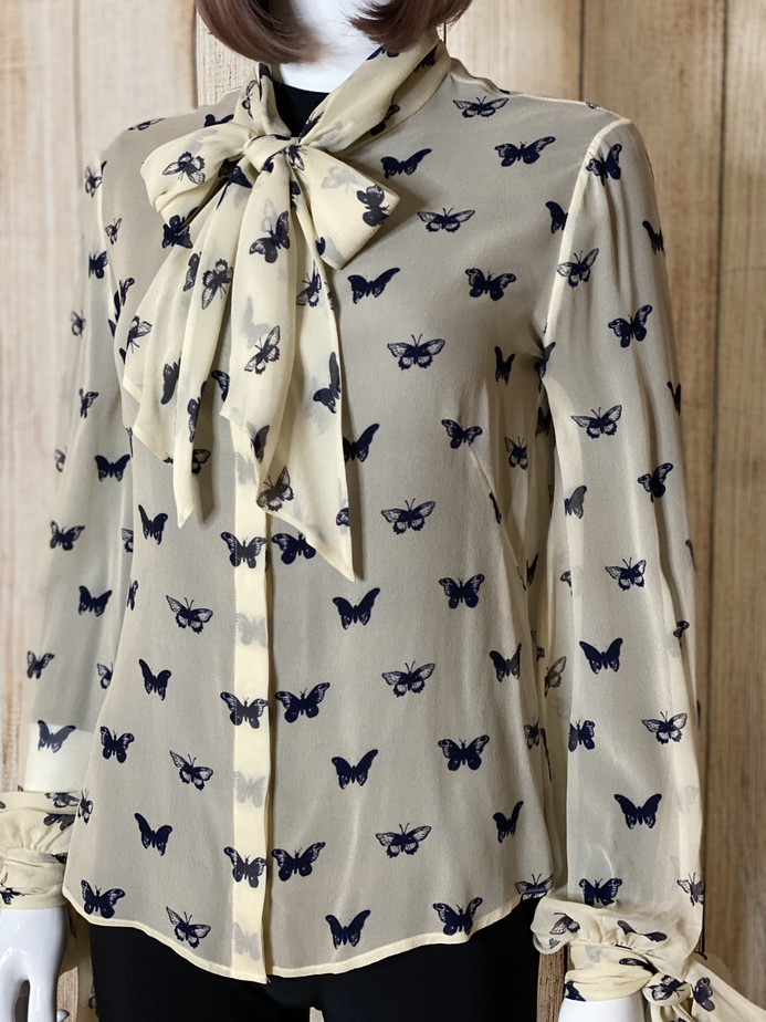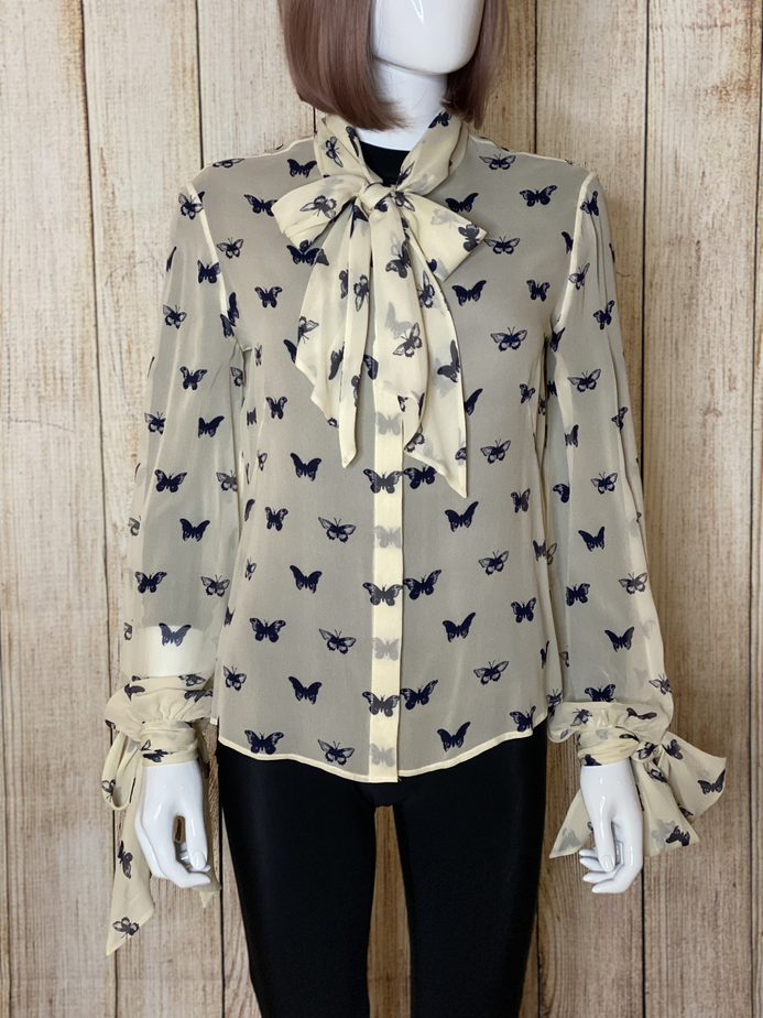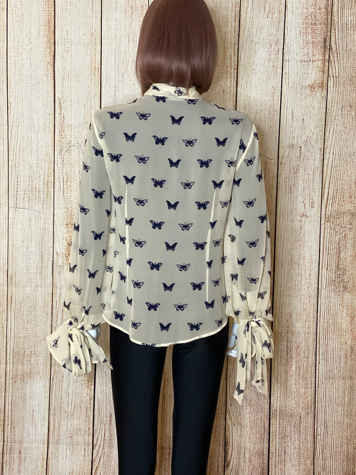 I am waiting for this item "Pussy Bow Butterfly Print Sheer Blouse"