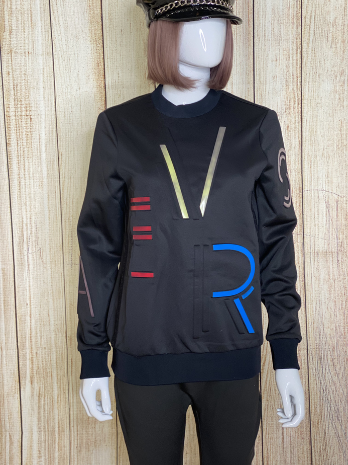 Leather Sewn On Letters Sweater