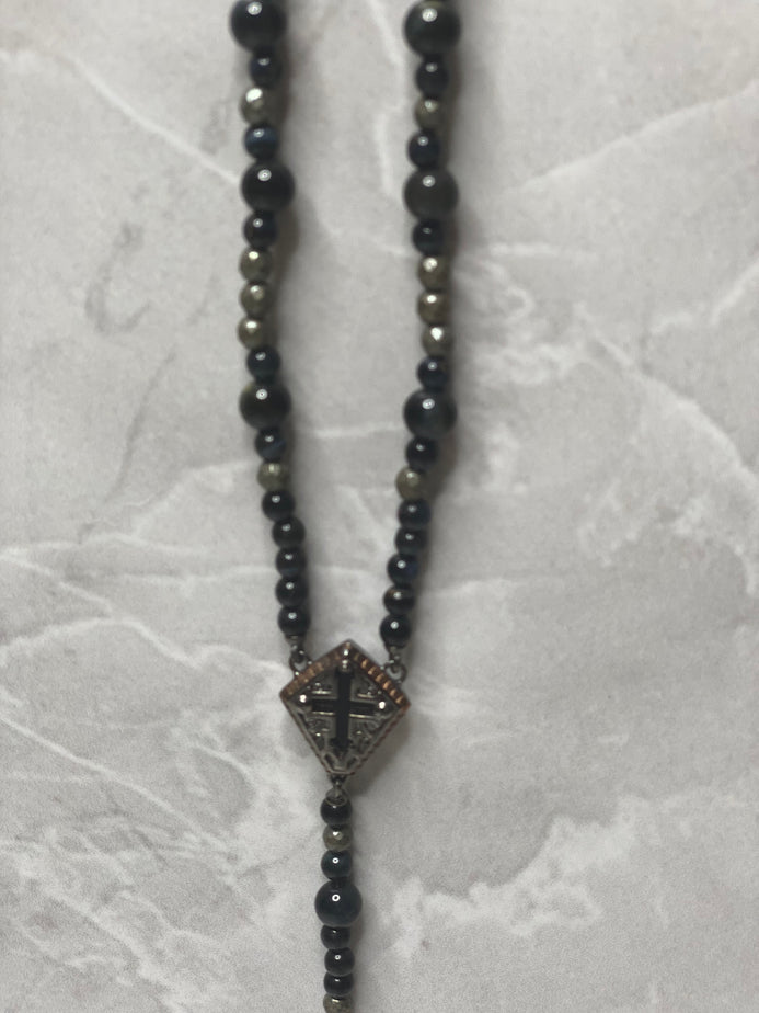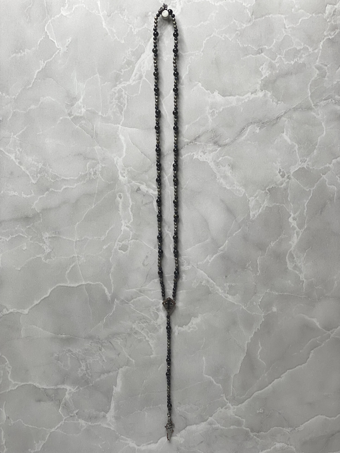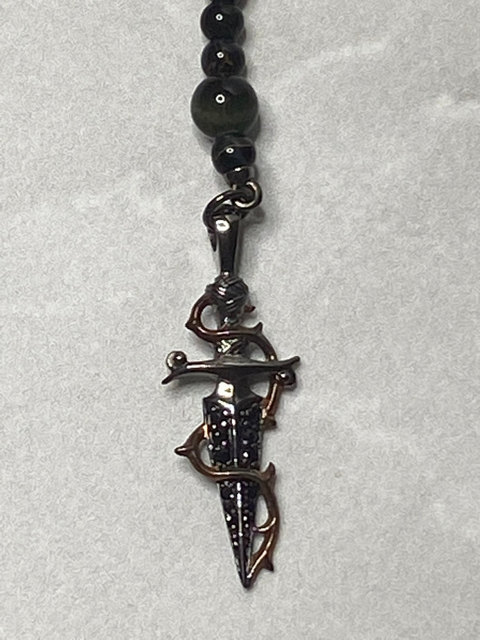 925 Sterling Silver No Regrets Cross & Dagger Rosary Bead Necklace